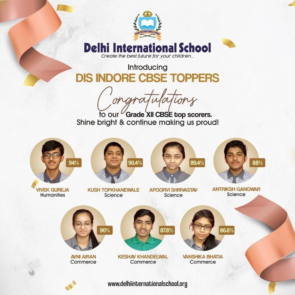 Our top achievers Hritvik Bansal 95% first position Kanika Agnihotri94% second position Vaishnavi Singh 93.8% third position Mohd.Anas Qureshi93.2% Alankrita Rajput 93% ,Saharsh Neema92%,Kanishka Raipurkar91.4%,Divyanshi Jain 91.8%,Drishti Utradhi90.4%,Sharwani Laud 90.06%,Sadgi Patel 90%,Darshini Agrawal90% and so on.