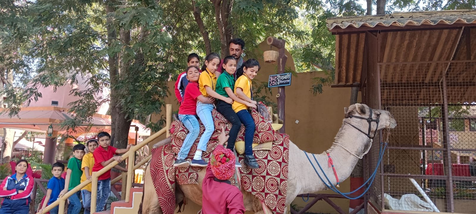 Delhi International School organised a one day trip for the grade IV and V to the “Nakhrali Dhani Village” which offers a huge platform for all the culture enthusiast of the world to experience the legacy of Rajasthan. Student enjoyed the traditional camel ride, horse ride and bullock cart ride. There they are welcomed with the traditionally Rajasthani folk songs and dance. Student enjoy the puppet show, magic show and disco, folk dances and rich Rajasthani food with their teachers. The motto of the trip is to make connected todays generation with our ancient cultures and trends.